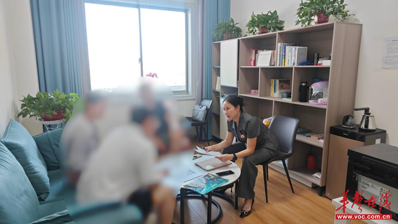 湘江新区婚调中心派驻法院的调解员罗思正在为当事人进行调解