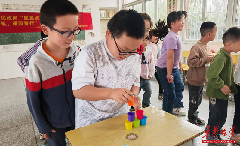华声在线10月16日讯(通讯员 黄南 钟鑫华)为丰富学生们在课间活动、锻炼学生手眼协调能力,10月15日,在邵阳市双清区民政局的支持指导下,邵阳市阳光社会工作服务中心在渡头桥镇鸡笼村的小学——邵阳市双清区芹菜学校开展2025年双清区“星星点灯”关爱未成年人之“星杯共筑 暖阳童行”志愿服务活动。学校20名留困同学参赛,以“小组对抗、最快完成为胜”为规则,让学生们在竞技中收获快乐与成长。