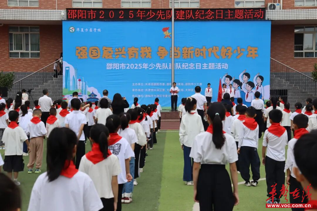 华声在线10月17日讯( 通讯员 王俊懿 ) 10月13日上午,“强国复兴有我 争当新时代好少年”——邵阳市2025年少先队建队日活动在大祥区华夏方圆学校举行。活动由共青团邵阳市委、邵阳市教育局、邵阳市少工委联合主办,邵阳市人民政府党组成员、副市长易海洪出席并讲话。