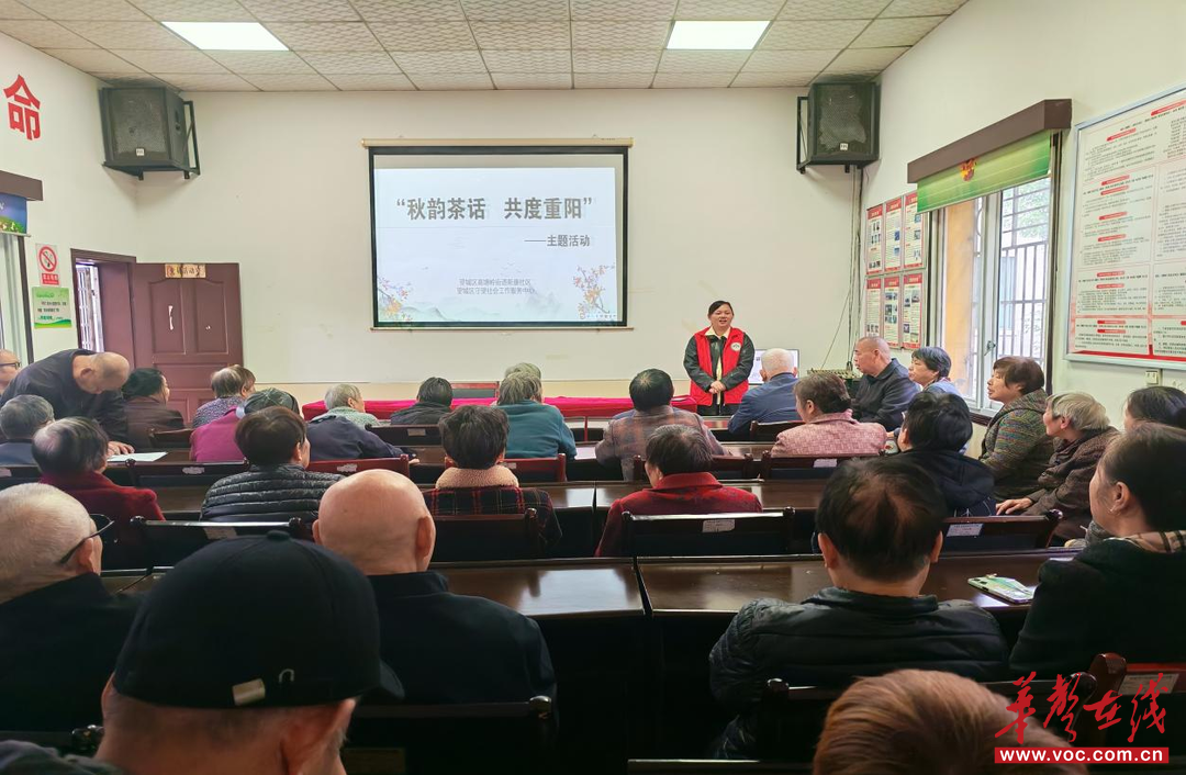 华声在线10月27日讯( 通讯员 王静 张蛟 )10月27日,望城区高塘岭街道新康社区联合望城区守望社会工作服务中心在新康社区居家养老服务站开展“秋韵茶话 共度重阳”活动,邀请辖区老人共赴一场温暖的秋日之约。