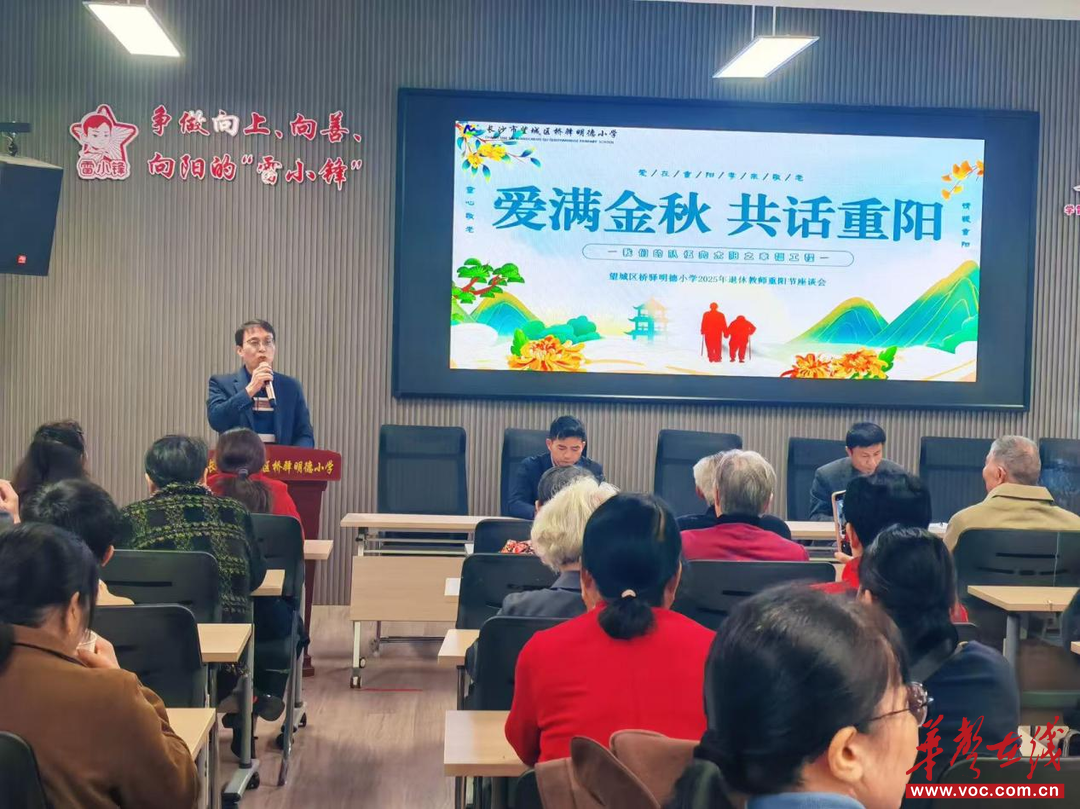 华声在线10月29日讯( 通讯员 李端利 )岁岁重阳,今又重阳。在这个承载尊老、敬老、爱老、助老传统的节日里,长沙市望城区桥驿明德小学以一场充满温情的座谈会,向为明德小学教育事业奉献青春与汗水的退休教师们致以最诚挚的敬意与祝福。10月29日上午,明德小学博学楼内暖意融融,“爱满金秋、共话重阳”退休教师座谈会如期举行,大家齐聚一堂,共忆教育往昔,共绘发展蓝图。