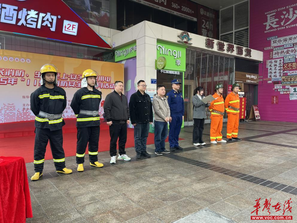 华声在线11月7日讯( 通讯员 张伟怡 )为进一步强化商圈及社区消防安全管理,提升居民、商户的消防安全意识和应急避险能力,11月7日,五一商圈综合党委联合长沙市芙蓉区定王台街道、芙蓉区消防救援大队、定王台消防站五一广场站、中医附二急救中心、新世界百货、长沙巨鹰物业公司等多部门共同开展了形式多样、内容丰富的消防宣传活动。定王台街道办事处主任何芳、定王台街道人大工委副主任杨曦参加活动。