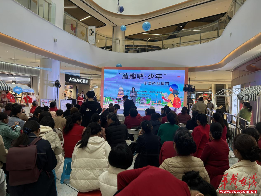 华声在线11月26日讯( 通讯员 李佳宜 )11月26日上午,由湖南湘江民政和社会保障局指导,湖南省大同社会工作服务中心、长沙市岳麓区益助公益服务中心、天顶街道社工站联合主办的“造趣吧,少年”非遗科创集市活动在欢乐颂商业大厅成功举办。活动通过手工体验、文艺汇演、公益义卖等形式,为天顶街道辖区居民打造了一场精神盛宴,同时还践行公益助困责任,向天顶街道的困境儿童传递社会温暖。