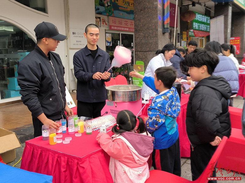 “我们希望不只服务大学生,更要把青年的创意与能力转化为可持续的社区服务供给。”团队负责人介绍。本次社区市集并非简单“摆摊”,而是以大学生双创项目展示与公益义卖为核心,通过“体验—讲解—公益义卖”的形式,搭建起青年与长者沟通互动的暖心桥梁。志愿者们耐心陪伴、细致讲解、用心倾听,用青春温度化解老人孤独,让社区更有烟火气、更具人情味。