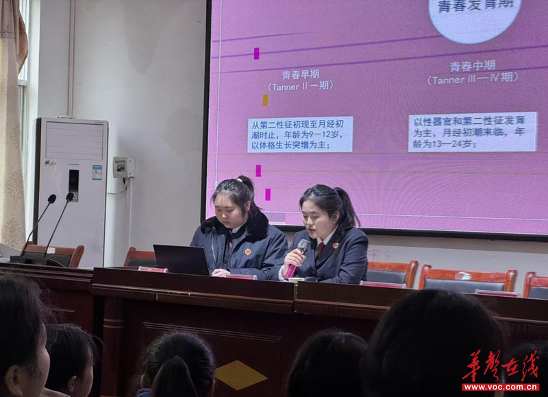华声在线3月19日讯(通讯员 刘佳盈)为增强未成年人自我保护意识,筑牢校园安全防线,3月17日,怀化市辰溪县人民检察院检察官走进城北小学,为六年级女生开展以“守护青春,检护未来”为主题的防性侵法治教育讲座。课程围绕青春期生理心理变化、性侵害识别与防范、法律误区辨析等内容展开,用温柔而坚定的力量为花季少女的健康成长保驾护航。