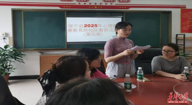 在研讨交流环节,刘老师汇报了县民族中学“5.25心理健康月”活动情况。随后,各学校的心理专职教师分享了“5.25心理健康月”活动特色经验,并围绕活动设计、资源整合等议题深入探讨,为推动县心理健康教育发展提供新思路。