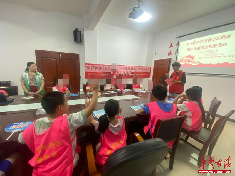 华声在线7月19日讯(通讯员 胡超嫦)7月18日,郴州市永兴县便江街道民政社工站联合永兴县司法局在塘门村开展关爱留守儿童"法润童心·护苗成长"主题法治宣传活动,活动通过"书籍浸润+课堂教学+互动实践"三重形式,为20余名留守儿童送上"法治大礼包",以民政社工+志愿者+司法温度护航乡村儿童健康成长。