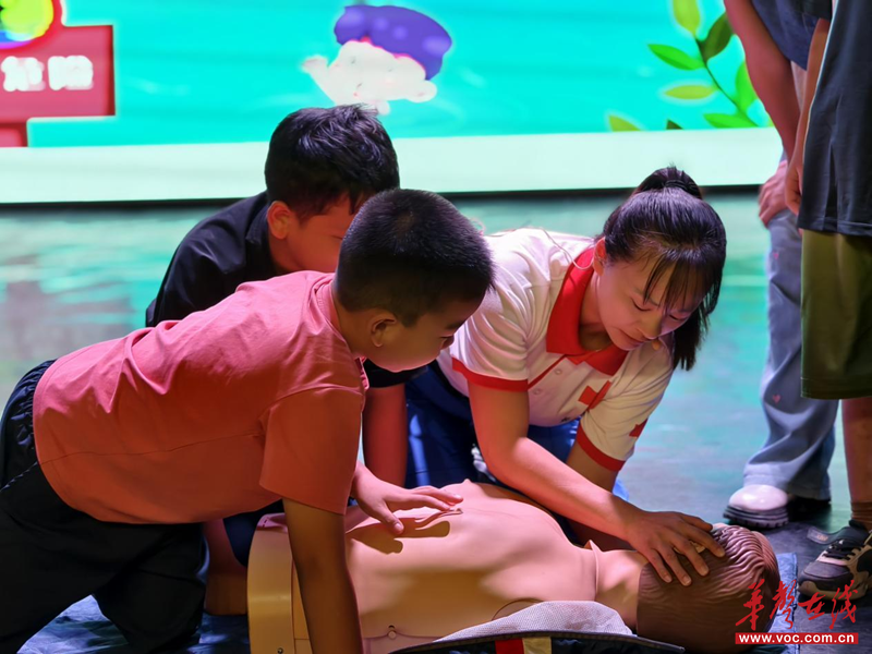 活动由来自芙蓉区红十字会的谢蔓老师主讲,第一部分她结合真实案例,用生动易懂的语言,向中小学生详细讲解了防溺水的基础知识 —— 包括哪些地方属于溺水高危区域、如何辨别溺水危险信号、远离溺水风险的具体方法等;同时,重点科普了溺水后的急救方法,从如何正确呼救、使用身边工具救援,到溺水者被救上岸后的初步处理流程,每一个知识点都讲解得细致入微,让在场中小学生深刻认识到 “防” 的重要性与 “救” 的关键性。