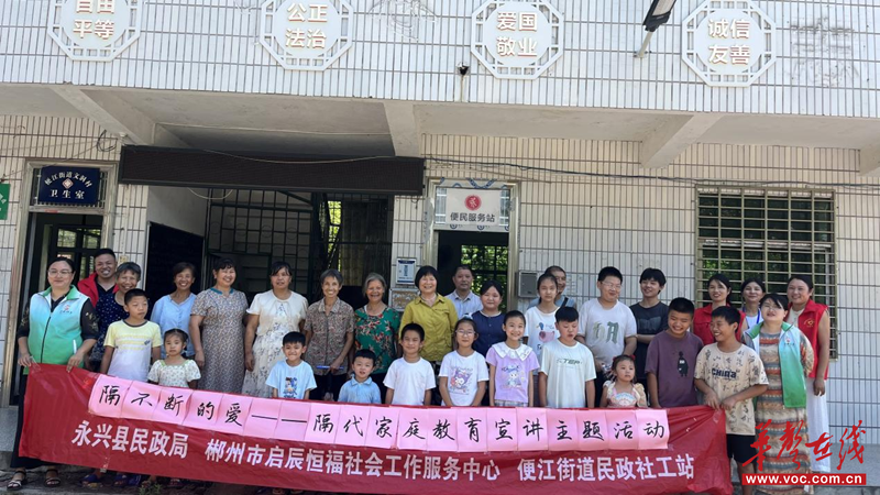 华声在线8月29日讯(通讯员 曹春莲)暑假期间小朋友们会回到农村老家和祖辈们度过,在此期间,祖辈们便担任起教养孩子的“临时父母”。为提升祖辈们科学育儿方法,8月27日上午,郴州市永兴县便江街道民政社工在文洞村开展了一场“隔不断的爱——隔代家庭教育宣讲活动”,此次活动吸引了文洞村祖孙30人参加。