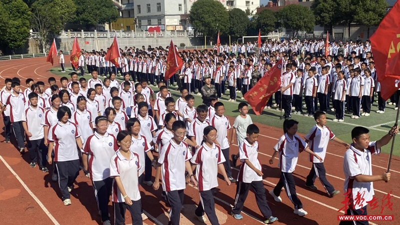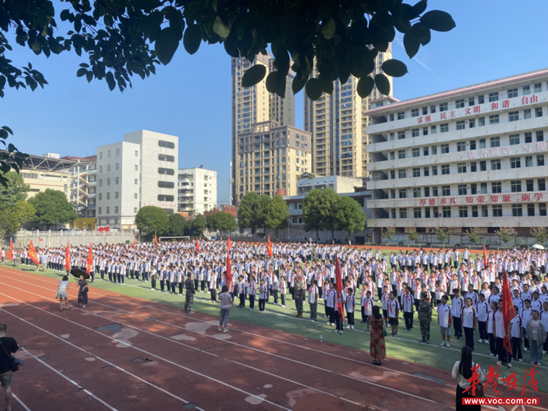 仪式在庄严的国歌声中拉开帷幕。各连队进行了整齐划一的队列展示,同学们步伐铿锵、口号响亮,展现了五中学子良好的精神风貌和训练成果。