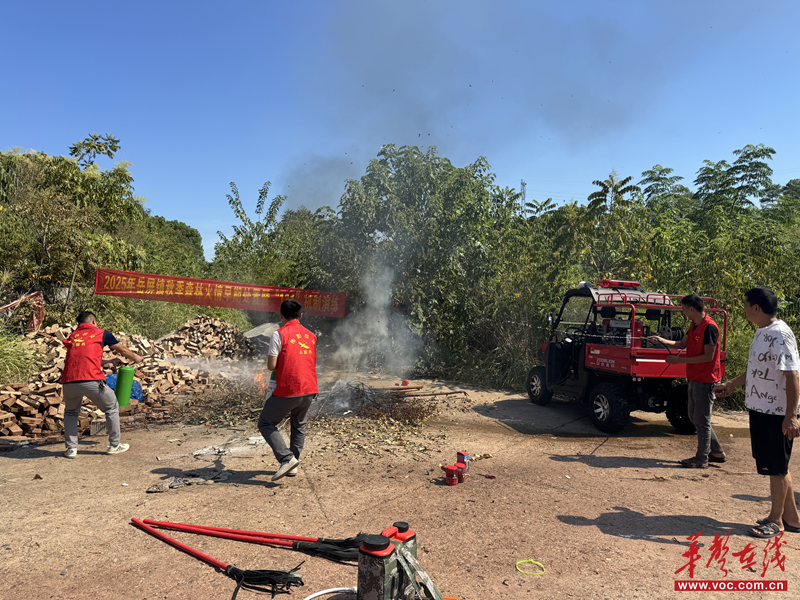 演练环节直击“实战”,现场模拟森林火灾突发场景,让参训人员在实战中锤炼技能。随着模拟火情信号发出,参演人员分为现场扑救、安全撤离、余火清理三个组,迅速携带灭火器、灭火炸弹、灭火拖把等装备,驾驶山地摩托车在模拟火情现场集结,按照预设分工有序展开扑火作业——现场扑救组负责操控灭火器械、驾驶山地摩托车扑灭明火,安全撤离组负责清理周边易燃物开辟道路撤离参演村民,余火清理组负责熄灭余火,各环节衔接紧密、配合默契,全程紧张有序。整个演练过程不仅检验了参训人员对灭火装备的实操能力,更提升了多群体协同处置的应急响应效率。