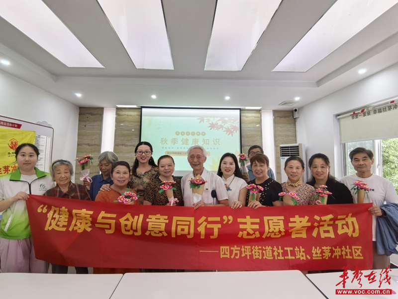 华声在线9月19日讯(通讯员 鲁韵怡)9月19日,为丰富老年人的精神文化生活,提升他们的动手能力与审美情趣,同时增强老年人的自我效能感与社会归属感,长沙市开福区四方坪街道社工站在丝茅冲社区开展“健康与创意同行”志愿者活动,吸引了社区“五老”志愿者积极参与其中。