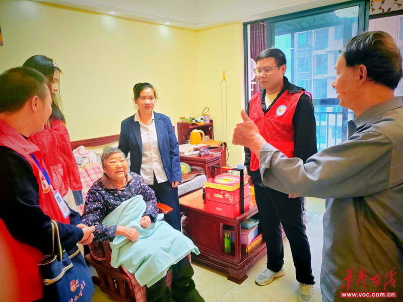 9月26日当天,社区工作人员、“雷小哨”网格员梁恒庆、小区物业人员与黎先生的儿子一同组成慰问小组,带着黎先生精心准备的中秋月饼,逐一上门走访社区特殊老年居民。每到一户,大家都与老人亲切交谈,详细询问老人的生活起居与健康状况,亲手递上月饼礼盒,送上节日的祝福与关怀。“谢谢你们记挂着我,这个中秋太暖心了!”收到礼物的老人脸上满是笑容,话语里满是感动。