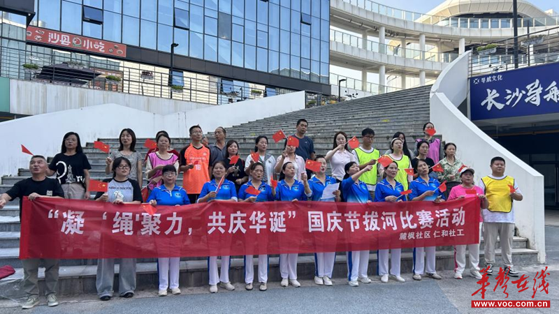 华声在线9月29日讯(通讯员 刘泽政)9月28日下午,湖南湘江新区岳麓街道麓枫社区联合仁和社工等辖区多家单位,组织党员、居民及共建单位职工共30余人,开展“凝‘绳’聚力,共庆华诞”国庆节拔河比赛活动,以运动凝聚力量,用激情献礼祖国。