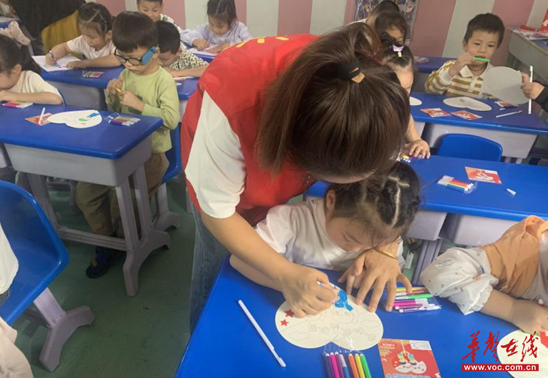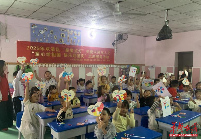 华声在线10月1日讯(通讯员 黄南 钟鑫华)9月30日,在邵阳市双清区民政局的指导下,邵阳市阳光社会工作服务中心在邵阳市双清区纸板厂幼儿园开展2025年双清区“温暖守护 点亮童心”关爱未成年人之“童心绘祖国 快乐迎国庆”志愿服务活动。40余名未成年人以扇为媒,用画笔勾勒家国图景,将爱国情怀凝于扇面之上。