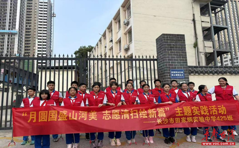 华声在线10月1日讯(通讯员 李青)9月30日下午,长沙市芙蓉区定王台街道黄泥街社区新时代文明实践站联合田家炳实验中学425班联合开展“双节焕新颜,志愿护绿意”环保主题活动,重点对五一绿化广场的路面、绿化带及公共设施进行大扫除。