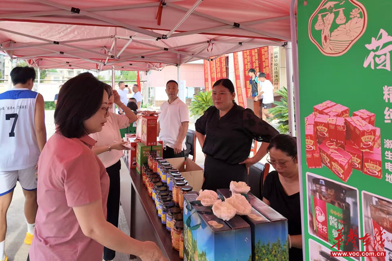 赛场旁,6家本地企业组成的农特产品展销区热闹非凡:李荷花酱菜的酸爽脆口、灶坪天麻的干货礼盒、蜜薯干的香甜软糯、楚佑柚子的清甜多汁、大湾红糖的醇厚甘美,吸引村民与游客驻足选购。展销区不仅让本土好物“出圈”,更搭建起“体育+产业”助农平台,为乡村振兴添动能。