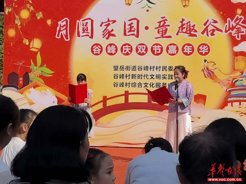 华声在线10月5日讯(通讯员 邱炼)10月2日上午,湖南湘江新区望岳街道谷峰村篮球场人声鼎沸、热闹非凡,“月圆家国·童趣谷峰”庆双节文化嘉年华在此精彩启幕,宛如一阵春风,激活了乡村文化地“一池春水”,为乡村振兴注入了鲜活地文化动力。