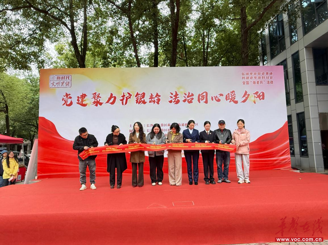 在活动主舞台上,荷晏舞蹈队的开场舞活力四射,民乐队、模特队等轮番上场,引发全场共鸣。湖南银行万家丽路支行开展的金融反诈宣传与有奖答题环节,让老人们在互动中掌握防骗技巧。党员志愿者穿梭在活动现场,为到场老人递上温热的菊花茶,搀扶行动不便的老人入座,并引导他们填写“党建服务需求表”,其中“党员优先服务”机制赢得老人们的好评。72岁的李奶奶捧着“服务包”喜笑颜开,赞不绝口。