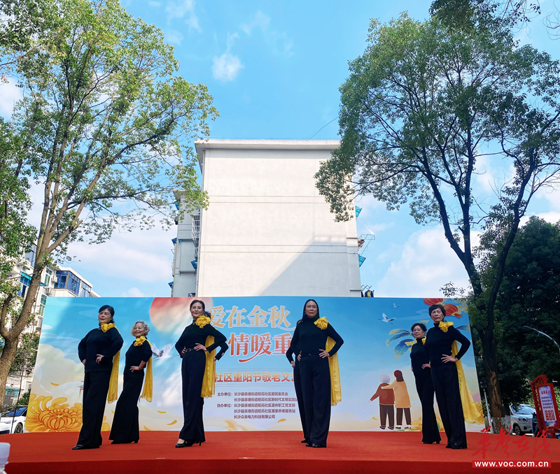 华声在线10月29日讯( 通讯员 周宁 )10月27日,长沙县泉塘街道阳高社区党总支联合电力职院居家养老服务站、退休职工党支部开展“爱在金秋 情暖重阳”文艺汇演活动。