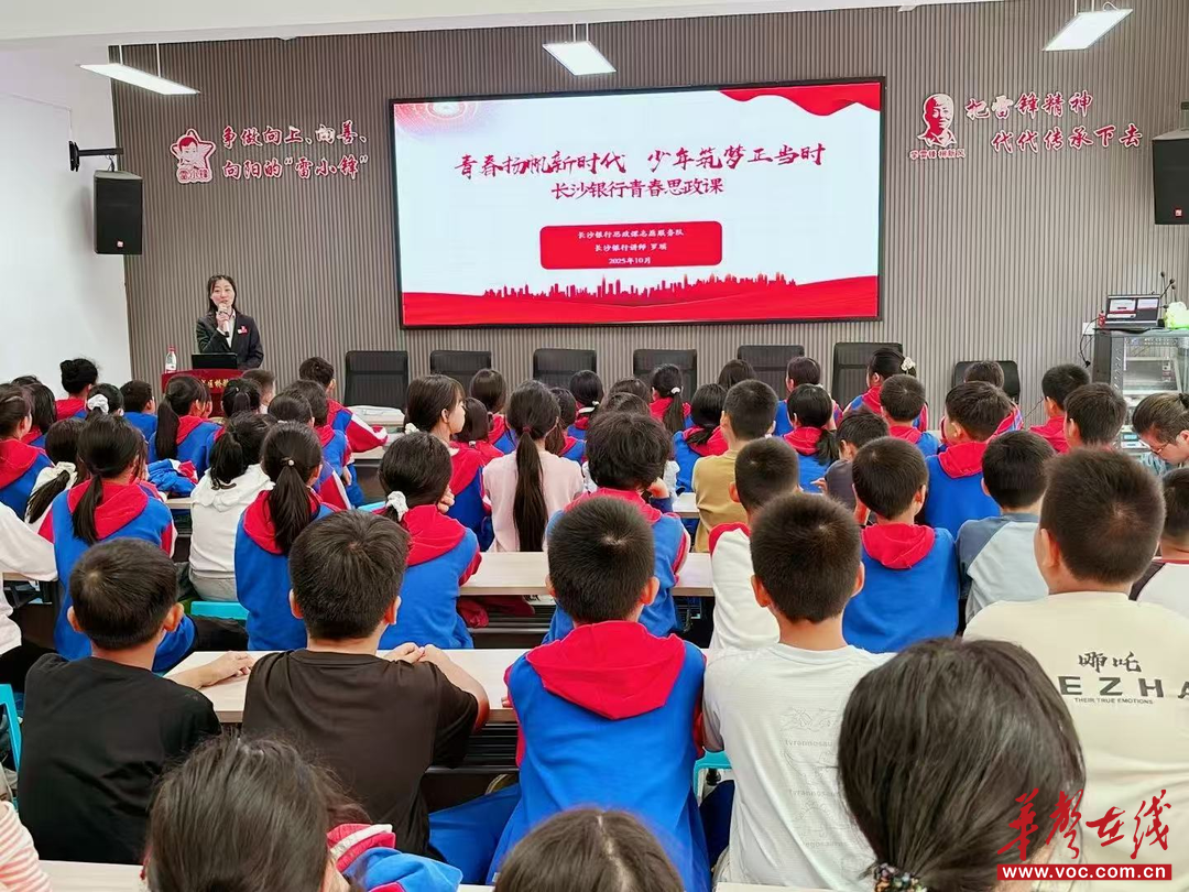 华声在线10月30日讯( 通讯员 李端利 )10月29日下午,长沙市望城区桥驿明德小学组织开展了青春主题思政课。本次活动特邀长沙银行讲师团队走进校园进行讲座,为五年级学生带来了一场别开生面的思政教育。