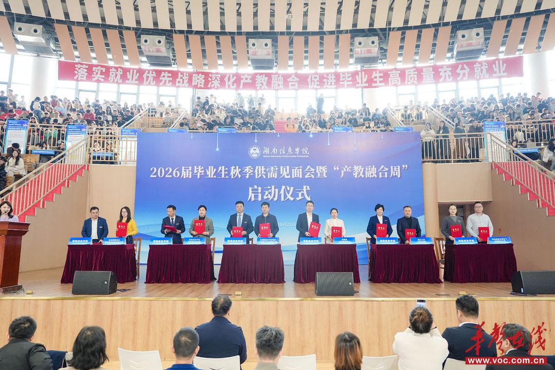华声在线10月31日讯(通讯员 杨浩 汪少龙)10月25日,湖南信息学院举行2026届毕业生秋季供需见面会暨“产教融合周”启动仪式。此次“产教融合周”以“深化产教融合,共筑校企协同育人新生态”为主题,精心组织了校企合作集中签约、产业导师聘任、产教融合需求发布、召开校地校企座谈会、举办企业家讲座、参观合作企业等七大活动,通过校企协同,共创共赢,共促毕业生高质量充分就业。