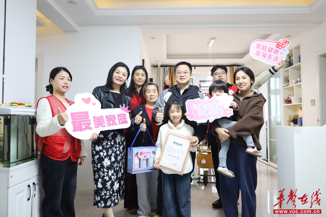 华声在线11月2日讯 (通讯员 邓姣英)“这份荣誉不仅是对我们小家的认可,更是对‘爱与责任’家风的传承见证!”近日,长沙市望城区天鹅塘社区工作人员带着烫金荣誉证书与定制奖牌,敲开了学林西岸小区刘飞飞家的大门,将“最美家庭”荣誉送到她手中,快门声定格下全家与荣誉合影的温馨瞬间。快门声中,一张张笑脸与荣誉证书相映成辉。“最美家庭”如文明火种,以家风为炬、以家教为光,不仅培育了优秀下一代,更为社区治理注入温暖动能,让家风家教之花在天鹅塘社区绚烂绽放。