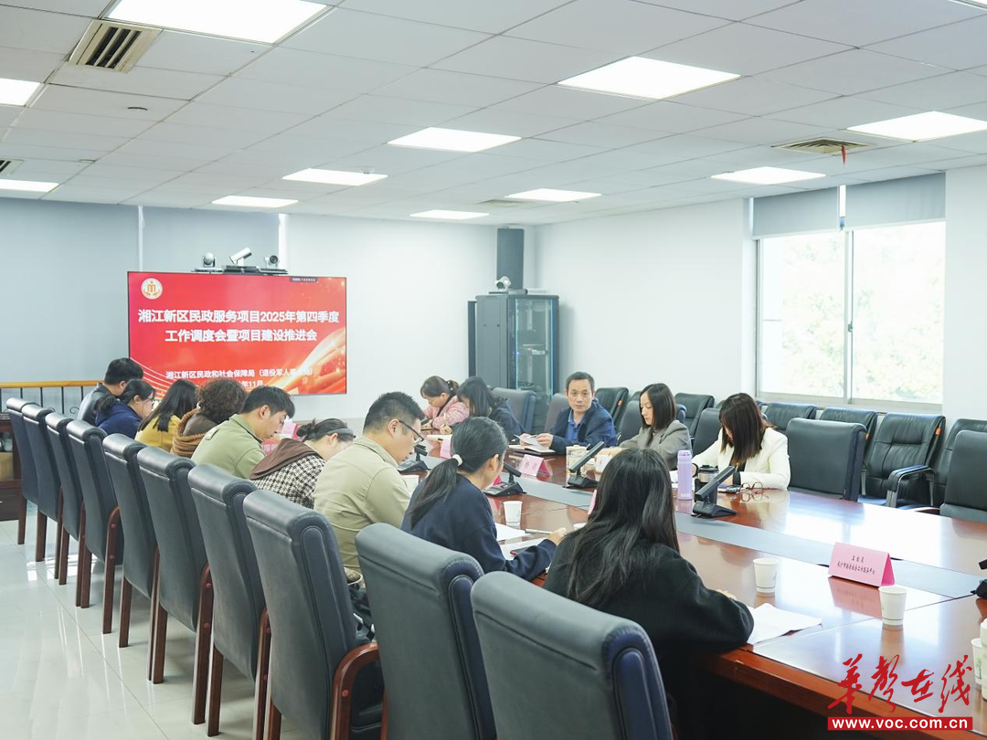 华声在线11月6日讯( 通讯员 胡小华 赵威武 )为全面推进湘江新区民政服务项目实施,精准部署下一阶段重点任务,有效破解项目推进中的难点堵点,进一步强化各承接机构间的协同联动,共同塑造具有新区辨识度的项目特色与服务品牌,11月5日上午,湘江新区民政和社会保障局( 退役军人事务局 )社会福利和社会救助处社会工作服务中心组织召开了2025年第四季度工作调度会暨项目建设推进会。