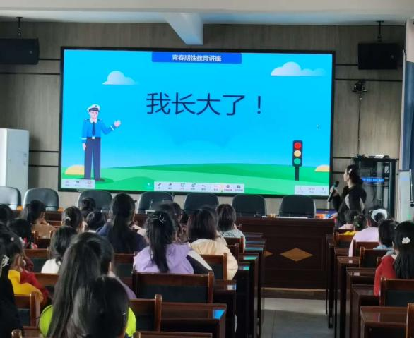 课堂上,唐嫣老师根据青春期女生的心理特点,教导大家如何正确处理人际关系,学会拒绝不合理要求;同时引导大家通过“情绪树洞”互动,释放心理压力。