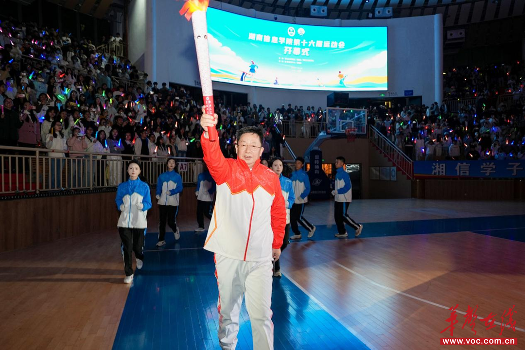 作为第28棒火炬手,陈登斌董事长手擎火炬绕场一周,在万众瞩目下点燃校运会主火炬!火光映亮一张张青春脸庞,掌声与欢呼声震彻全场,这不仅是运动精神的传承,更是 “升硕更大”的信念传递,湘信院正以昂扬姿态书写“湘信有为”新辉煌!