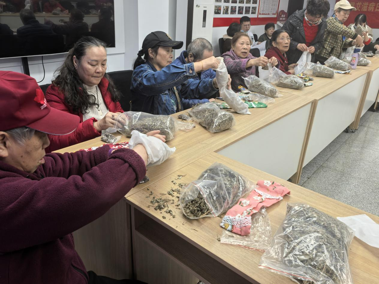 在艾草枕手工制作环节。社工和志愿者提前备好了艾草、枕套等材料,并现场指导制作技巧。“这个活动办得太好了!不仅免费检查了身体,学到了知识,还能亲手做一个安神的枕头带回家!”居民李阿姨称赞道。