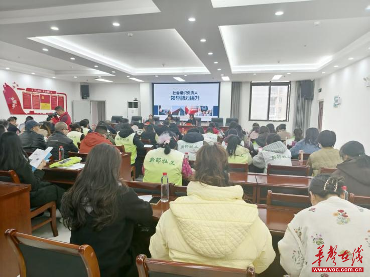 华声在线11月19日讯( 通讯员 刘芳 李瑶琴 )为全面提升全县社会组织的专业化、规范化运作水平,进一步激发社会组织参与基层治理的活力,切实增强社会工作服务效能,11月18日,邵阳市新邵县以“聚焦角色使命 提升专业能力”为主题举办社会组织负责人与社工能力提升专题培训。本次培训由新邵县民政局主办,新邵县社会组织孵化和培训基地、新邵县阳光社会工作服务中心联合承办。培训由新邵县阳光社会工作服务中心副主任、新邵县民政社工总站长李瑶琴主持,来自全县各社会组织的负责人及专职社工近100人参加学习。