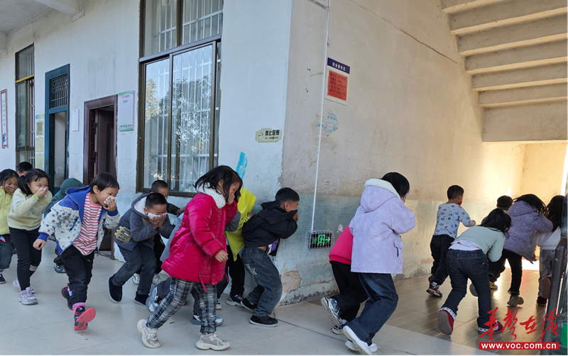 随着演练信号员向桢芳发出的清脆口哨声响起,结合学校广播的统一指令,全校集中演练正式启动。在任课教师的指挥下,各班学生沉着冷静,按照预定路线,弯腰低姿、捂住口鼻,有序从教室前门、后门撤离。疏散引导小组成员及空课教师迅速到位,在第一、第二教学楼的东、西楼梯口及各楼层关键点引导分流,严格遵循“先楼上、后楼下”的疏散秩序,杜绝拥挤、推搡现象。