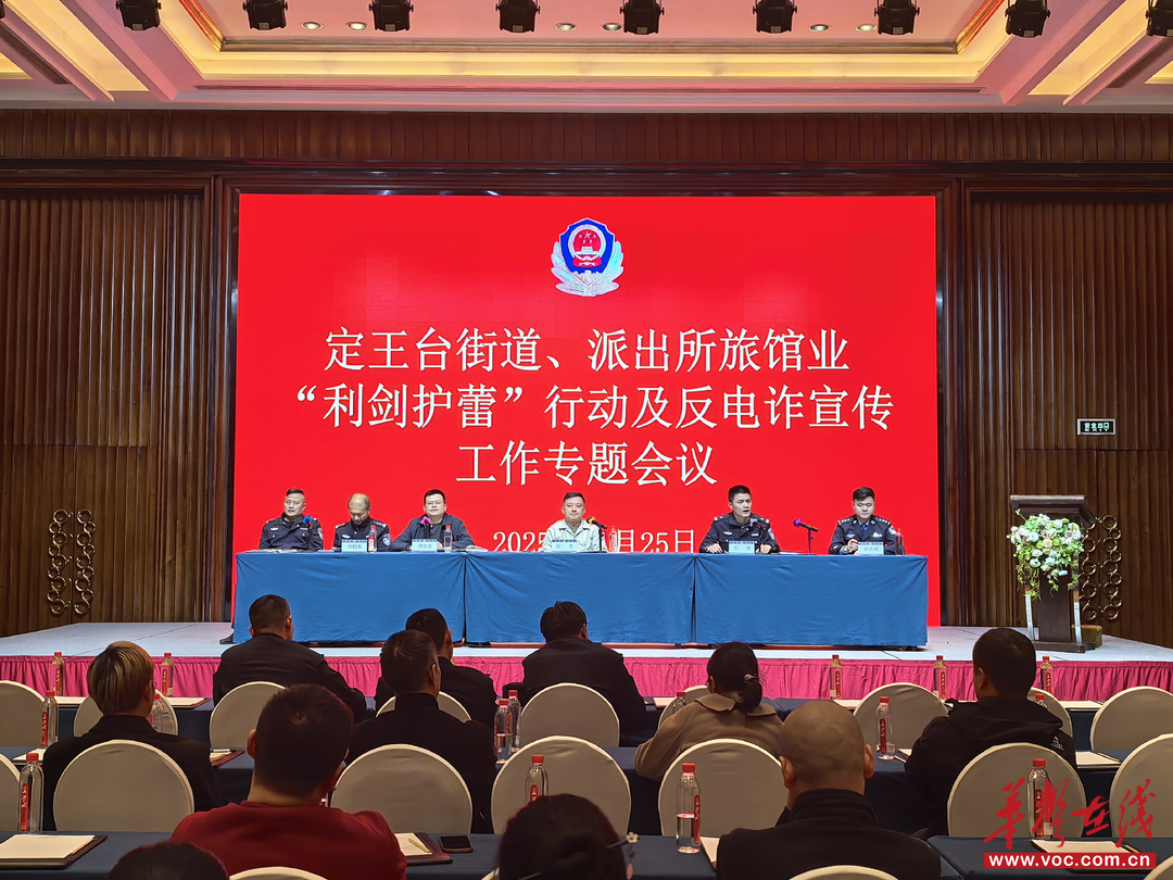 华声在线11月26日讯(通讯员 廖鑫菁)为深入推进“利剑护蕾”专项行动,筑牢电信网络诈骗防范屏障,切实保障未成年人合法权益与人民群众财产安全,11月25日,长沙市芙蓉区定王台街道在温德姆豪廷酒店会议室组织召开辖区宾馆酒店行业“利剑护蕾”暨反电诈工作专题会议。定王台街道党工委副书记、街道办事处主任何芳,定王台街道党工委副书记邓忠良,定王台派出所所长刘渊,定王台派出所副所长郝志明,长沙市公安局芙蓉分局治安管理大队副大队长刘四军出席会议。辖区内宾馆、酒店、民宿经营负责人等三百余人参会。