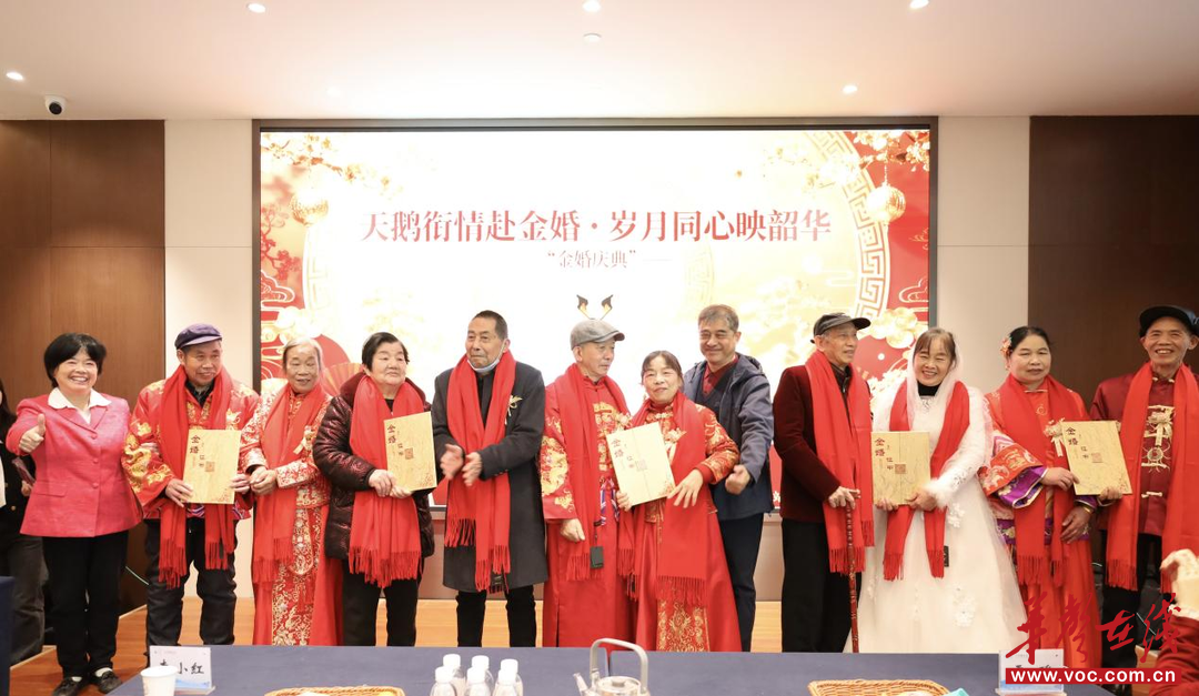 华声在线11月28日讯( 通讯员 刘娟 )五十年相濡以沫,半世纪情深意长。11月27日上午,一场以“天鹅衔情赴金婚・岁月同心映韶华”为主题的金婚庆典在月亮岛街道天鹅塘社区温馨上演。活动邀请了社区内数对携手走过五十载风雨的金婚夫妇,各级领导、嘉宾与社区居民齐聚一堂,共同见证了这一感人至深的幸福时刻。