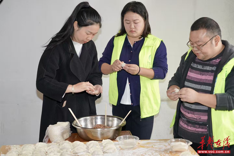 游戏结束后,包饺子环节正式拉开序幕。社工们与老人们围坐在一起,分工协作、默契配合。调馅、包饺子,大家边包边聊,分享着生活中的趣事。有的老人手法娴熟,很快就包出一个个饱满圆润的饺子;有的社工向老人请教技巧,现场学习包饺子的手艺。一张张饺子皮在大家手中翻飞,一个个形态各异的饺子逐渐堆满了托盘,空气中弥漫着饺子馅的鲜香和浓浓的温情。
