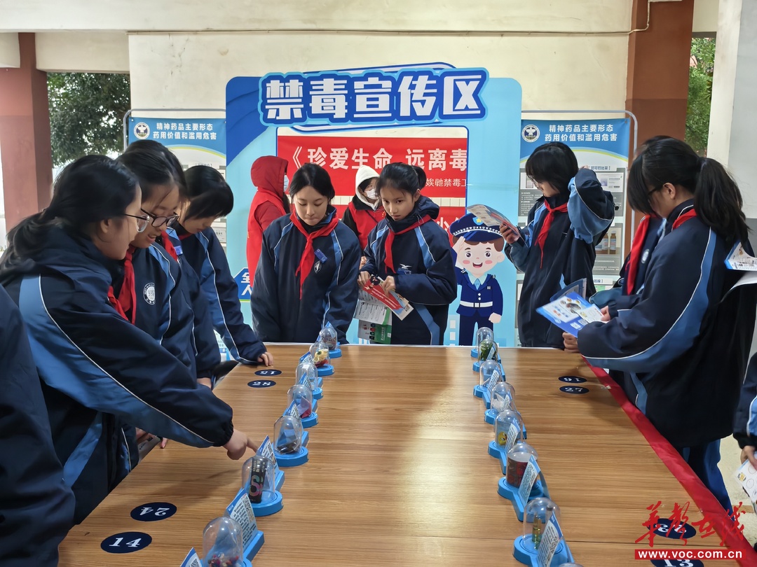 法治护航区内,专业律师结合校园欺凌、网络保护等鲜活案例,以知识问答的形式,深入浅出地普及《中华人民共和国未成年人保护法》知识,迅速激发学生的参与热情,使法律知识在欢声笑语中深入人心;紧邻的心灵驿站区,同学们在心理咨询师的引导下,参与绘画、塔罗牌等心理体验活动,帮助同学们缓解学业压力与青春期心理困扰,有效提升了积极心理品质;爱眼护眼区能免费洗眼镜、领眼镜盒,医护人员通过视力检测、眼部模型演示,细致讲解科学用眼、规范做眼保健操的方法,让爱眼理念在演示中深深扎根;禁毒宣传区,长沙市强制隔离戒毒所工作人员与“五老红”马娭毑禁毒工作室马玲结合真实案例,通过禁毒模型展示,深刻剖析毒品对青少年的危害及防毒拒毒技巧,在青少年中筑牢防毒拒毒思想防线。
