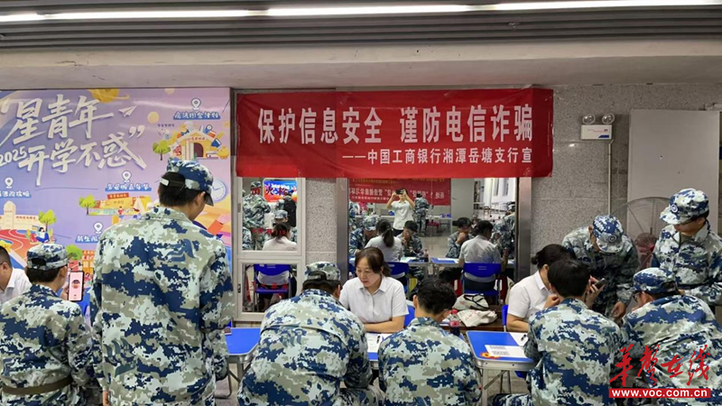 除了厅堂内的联动防控,岳塘支行还主动延伸反诈宣传触角,开展进学校、进企业、进社区系列活动。走进大学院校,通过主题讲座、发放宣传品等形式,向大学生普及网络贷款诈骗、刷单诈骗、冒充熟人诈骗等常见骗局。