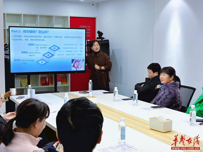 华声在线12月19日讯(通讯员 刘苗)为深化婚姻家庭矛盾纠纷源头治理,推广科学家庭沟通理念,近日,望城区婚调中心联合月亮岛街道天鹅塘社区妇联,在社区“幸福号”家庭辅导室基层站点开展以《“用爱沟通,用心倾听”——非暴力沟通在家庭中的应用》为主题的沙龙活动,切实提升辖区家庭沟通质量,筑牢家庭和谐根基。