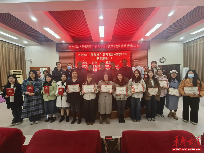 华声在线12月19日讯(通讯员 赵敏)12月16日下午,邵阳市第五中学在报告厅召开全体教职工大会,举行2025年“导群杯”青年教师教学比武总结表彰仪式。学校全体校级领导出席大会并为获奖教师颁奖。