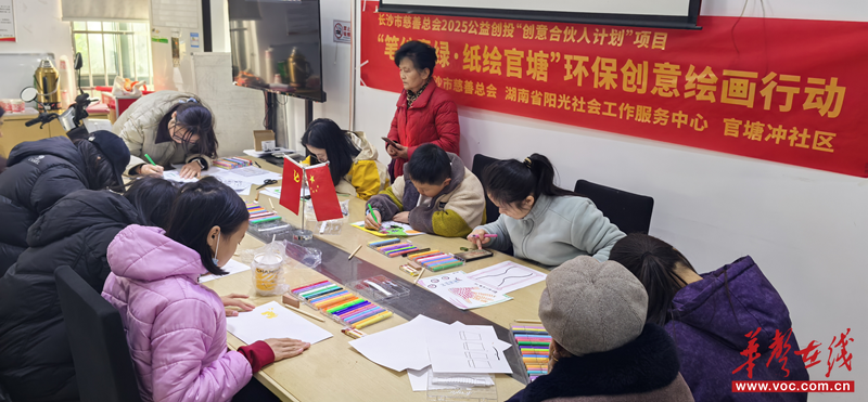 华声在线12月29日讯(通讯员 杨志春)12月27日,由长沙市慈善总会支持,湖南省阳光社会工作服务中心携手官塘冲社区顺利开展了公益行动派-笔绽青绿·纸绘官塘-环保创意绘画行动,青少年携手用画笔守护绿水青山。