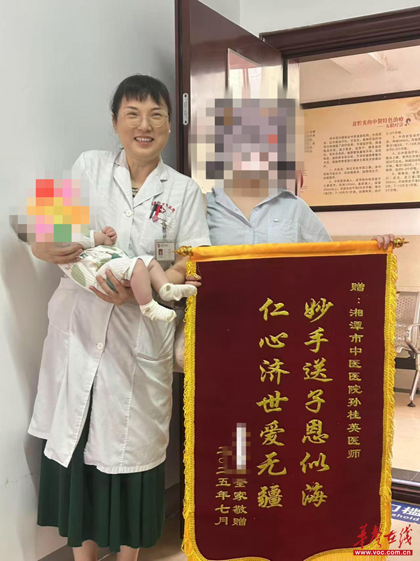 35岁王女士因月经不规则、未避孕3年未孕就诊,外院曾诊断为卵巢功能减退。经孙桂英医生耐心诊疗、对症调理后,月经逐渐规律,遵循“种子必先调经”理念,最终刘女士传来受孕成功的喜讯,B超提示宫内早孕。后续孙桂英医生为其开具中药安胎,王女士于2025年6月平安诞下“蛇宝宝”,满月后她满怀感激特意为孙桂英医生送上锦旗致谢。
