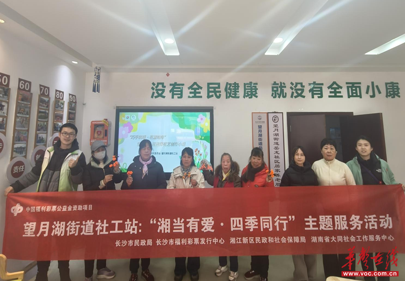 华声在线1月7日讯(通讯员 谢荣寰 周子琰)1月7日,湘江新区望月湖街道岳龙社区内暖意融融,由望月湖街道社工站牵头,湖南省大同社会工作服务中心联合岳龙社区居委会、岳龙社区居家养老服务站等单位依托“五社联动”机制开展的“巧手筑暖・花漾晚年”空巢老人手工创作小组活动顺利启幕。活动以手工花艺制作为载体,发挥社工专业优势与资源链接能力,为空巢老人搭建交流平台,将“五社联动”关爱特殊群体的理念落到实处。