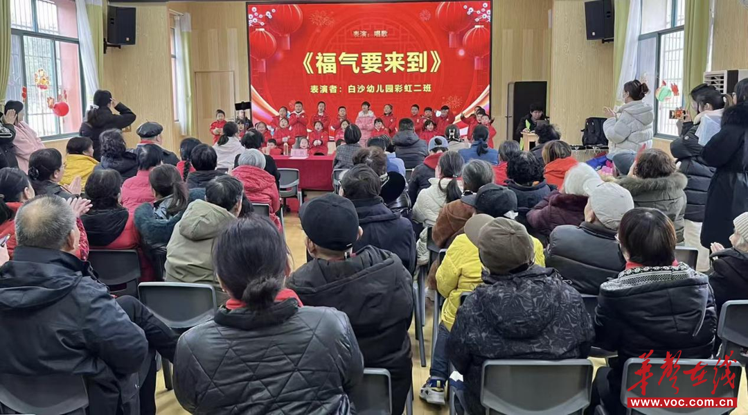 总结分享环节结束后,社区文艺志愿者与白沙幼儿园小朋友们联袂奉献了一场精彩纷呈的文艺演出。舞蹈《中国大舞台》气势恢宏;童声合唱《福气要来到》《你好,我好,新年好》充满童真与希望;红歌联唱深情铿锵;音乐快板《平安志愿唱新风》生动诙谐;合唱《二十年后再相会》温情动人。活动中还穿插了“平安知识快问快答”互动环节,现场气氛轻松活跃。最后,全场齐声高唱《没有共产党就没有新中国》《歌唱祖国》,激昂的旋律将现场气氛推向高潮。