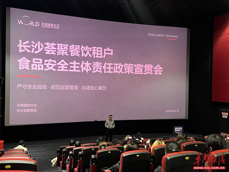 华声在线1月22日讯(通讯员 欧阳艳芳)1月21日下午,湖南湘江新区洋湖街道洋湖国际社区以党建为引领,深化“网格吹哨、部门报到”基层治理机制,联动街道便民服务中心、驻街市场监管所等部门,组织商圈80余家餐饮门店负责人召开食品安全政策宣贯培训会。此次培训响应了长沙荟聚商圈商户规范经营诉求,以精准服务与协同治理筑牢商圈食品安全屏障,压实餐饮经营单位主体责任,为“放心消费幸福洋湖”品牌注入红色动能。