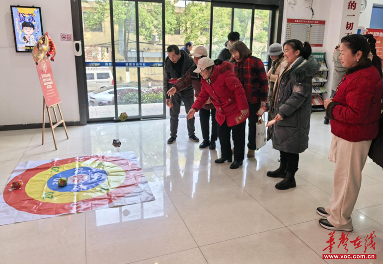 趣味互动区充满了欢声笑语。“幸运滚滚乐”“礼品套套乐”“飞镖投球”“双人接球”“垃圾分类知多少”“眼疾手快”6个特色游戏项目,居民们踊跃参与,大人小孩齐上阵,在协作与比拼中收获快乐。年过七旬的王爷爷带着孙子参与套圈游戏,成功套中一个柿柿如意小茶罐,他笑着说:“社区今年的马年主题嘉年华特别有意思,不仅能和老邻居聊天,还能陪孙子玩游戏,比在家热闹多了!”飞镖投球考验眼力和准确性,双人接球却要求搭档配合默契,看似简单的游戏,需要全部通关还是需要动脑动手的,大家玩得热火朝天,现场氛围其乐融融。活动规定完成任意五项游戏即可领取随手礼,领到礼品的李阿姨笑得合不拢嘴:“玩了游戏还拿了礼品,社区不仅让我们提前感受到了新春氛围,还送福给我们,今天真是收货满满,太贴心了!”
