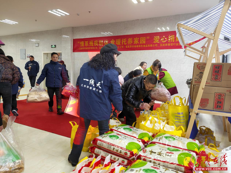 华声在线1月26日讯(通讯员 郑童南)1月25日下午,“情系残疾群体 食暖托养家园” 爱心捐赠活动在张家界市残疾人托养中心圆满举行。张家界明诚商贸有限公司、张家界通华粮油有限责任公司、张家界杨雄绿色食品有限公司、张家界餐饮行业协会四家爱心单位携手践行社会责任,联合捐赠价值万元的食品物资,涵盖大米、食用油、糯米、面粉、挂面、调味品、干货等十余种品类,为中心全体在托残疾学员送上冬日关怀与新春祝福。