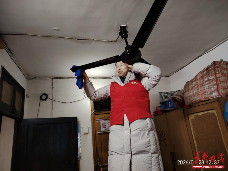 除基础摸排外,志愿服务团队还为老人们送上了全方位的暖心关怀。志愿者们挽起衣袖清扫房间,细致打理屋内角落,将杂乱的居所整理得干净整洁;围坐身旁静静倾听老人心声,用朴实的家常话拉近距离,一句句关切问候和耐心陪伴,让老人们的脸上绽放出久违的笑容。困境老人王叔叔紧紧握着志愿者的手,语气真挚地说道:“真的太感谢你们了,平时家里就我一个人,冷冷清清的,你们一来不仅帮我扫地拖地、擦洗电风扇,还陪着我说说话,心里特别温暖。”简单的话语,满含着老人的感动与认可。