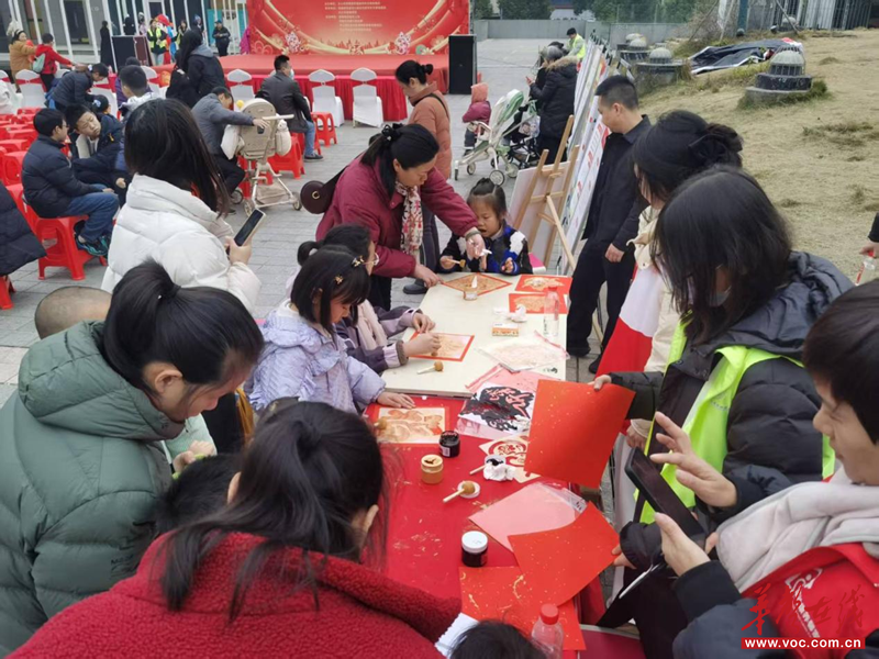 舞台活动结束后,丰富的外场体验区随即成为居民流连忘返的乐园。在“翰墨迎春”区,老书法家们以清正廉洁、家风家训、吉祥喜庆等为主题挥毫泼墨,在尺牍篇幅、翰墨幽香之中,向居民群众传递出对清廉建设、幸福生活等美好愿景的期许;在“巧手纳福”手工台前,小朋友们兴致勃勃地体验福字拓印、彩珠相框画;“骏马迎春”主题打卡区则成了拍照热点,居民们纷纷在融合传统元素的背景板前合影,记录欢乐瞬间。同时,“同心服务”便民区提供的政策宣传、健康义诊、义务磨刀等志愿服务,切实将关怀送到了居民身边。