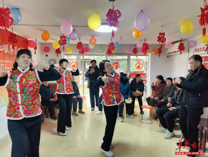 骆家坝分会场,小区党支部对2025年度为小区建设做出突出贡献的优秀志愿者进行了表彰,弘扬了志愿服务精神。迎春环节,写春联送祝福传递墨香情谊,广场舞、小品、二胡演奏等才艺充分展现了居民风采。在“邻里茶饮话家常”区,居民们品茶交流并共同参与挂灯笼、贴福字等志愿服务,将小区装扮得年味十足。